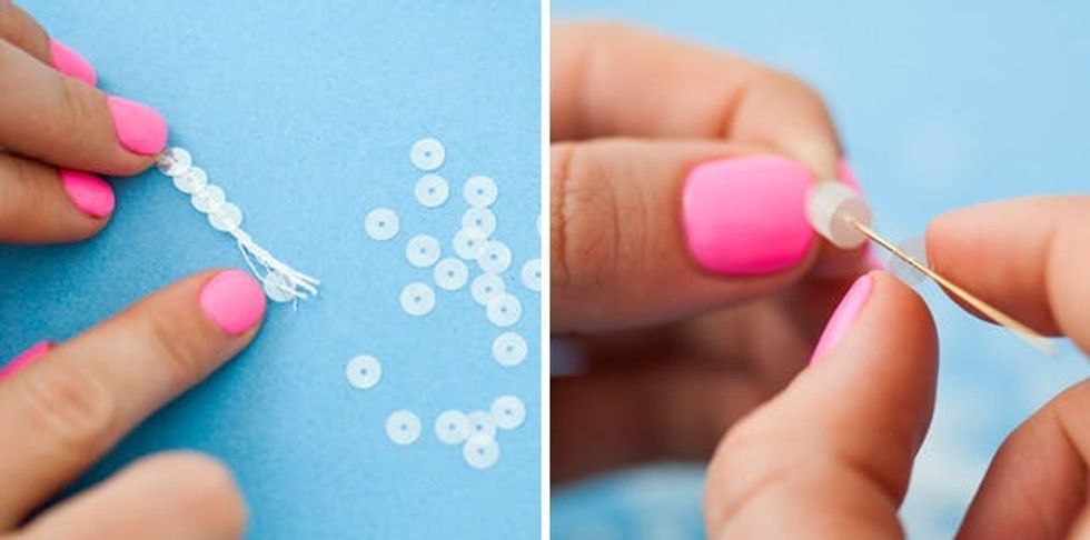 We found our strings of sequin trim at a local fabric store, but you can also find loose sequins at craft and jewelry stores.