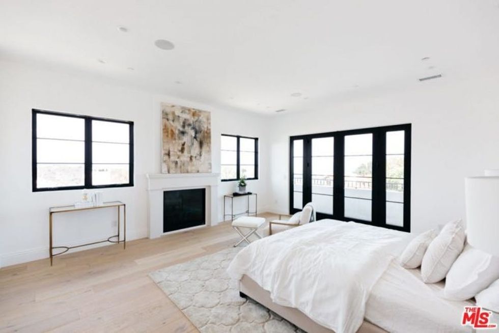 The bright and airy master bedroom features a cozy fireplace, because — believe it or not — it does get chilly in LA. On the other 364 days that it isn’t cold, open those double doors and you’ll find a balcony that’s pretty much the ideal place to sip your morning coffee while taking in scenic views of Beverly Hills.
