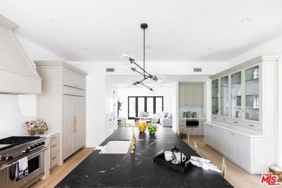 The kitchen is meant for cooking, with a huge marble island that provides plenty of space for prepping and hanging out. And this wouldn’t be California living if there weren’t doors opening out onto a sprawling veranda where outdoor dining and wine sipping is sure to occur. (This house comes with a wine cellar, after all!)