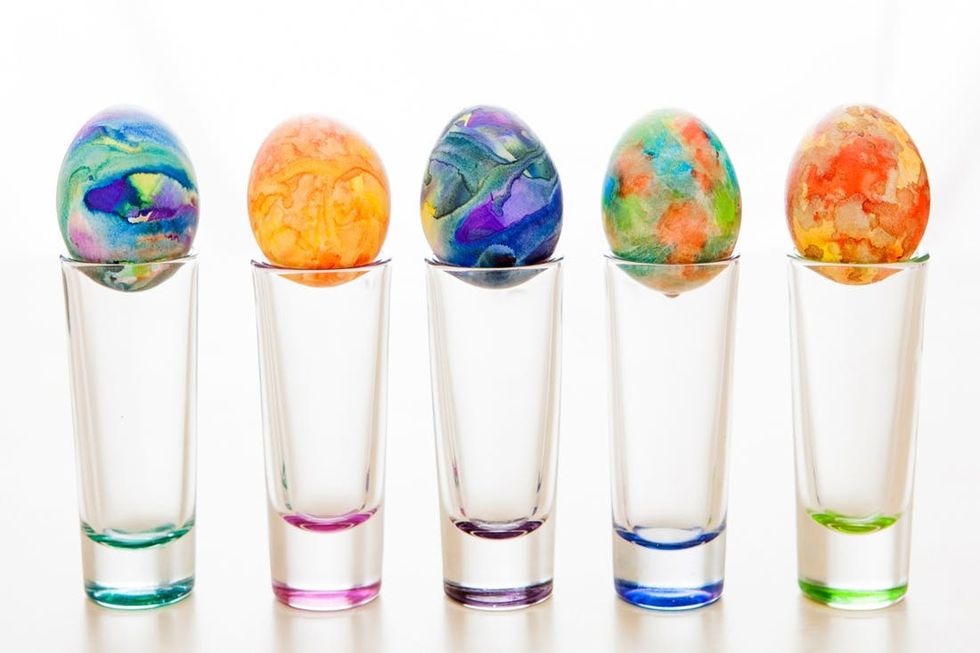 Now that you have your newly-emptied egg shells, it’s time to decorate! We found that color blocking your egg gives you the best tie dying results. Experiment with all different hues and amounts of color on your eggs.