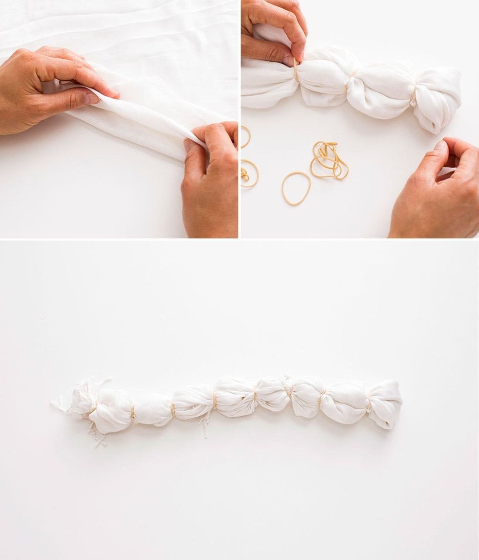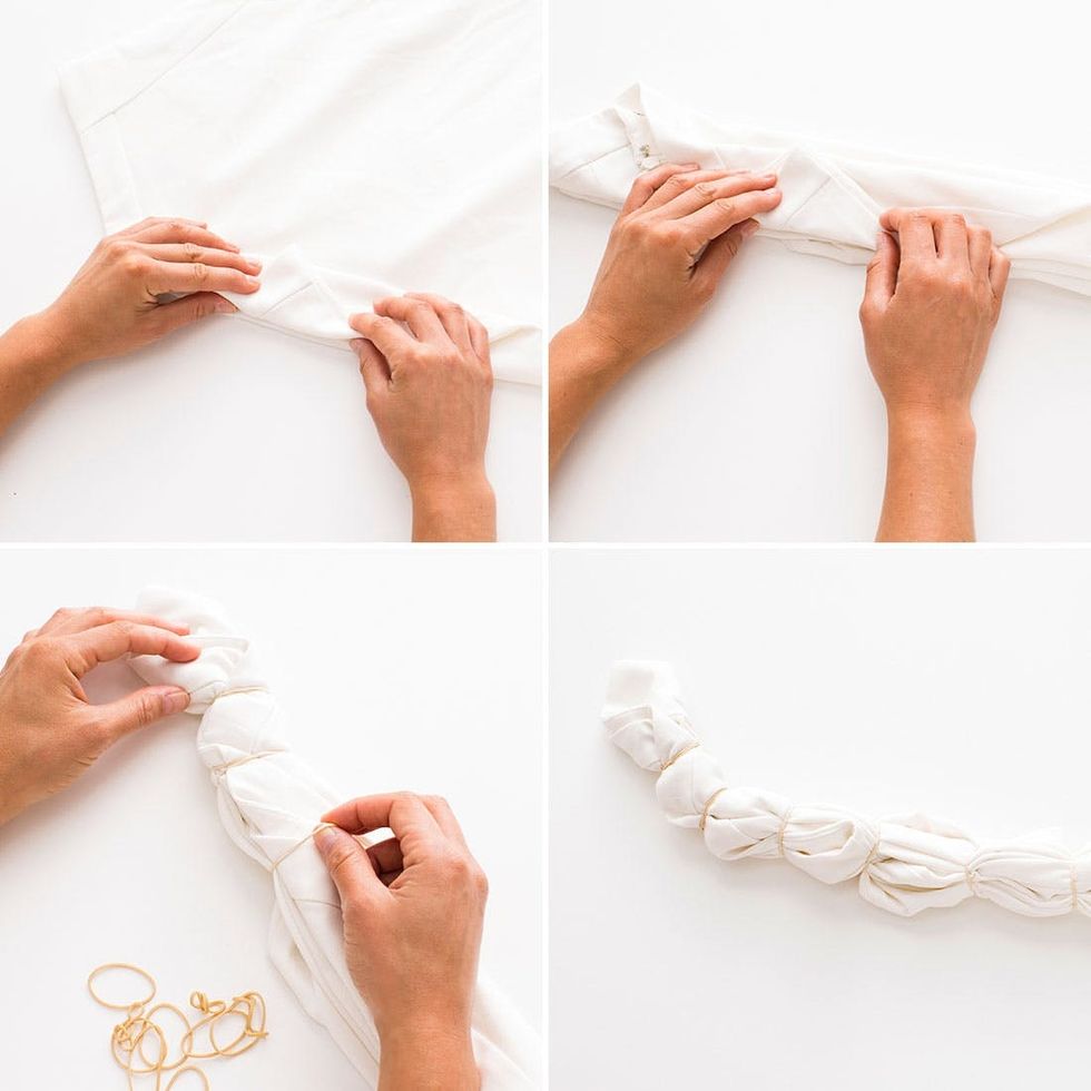 2. Prepare your items by folding and adding rubber bands (see techniques below).