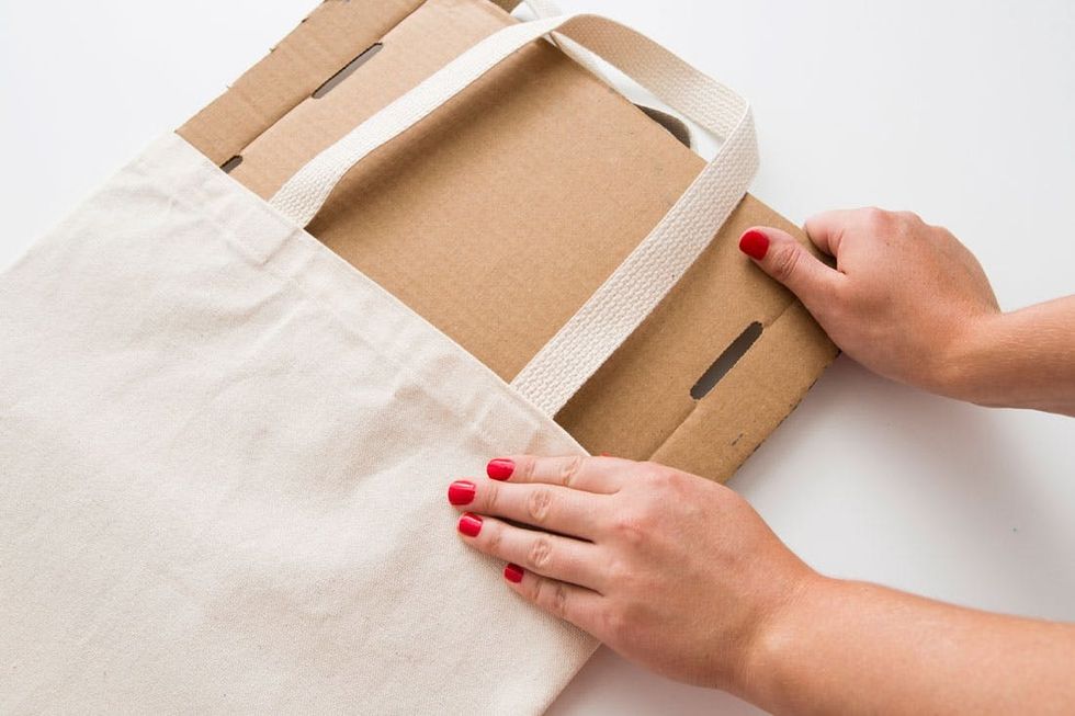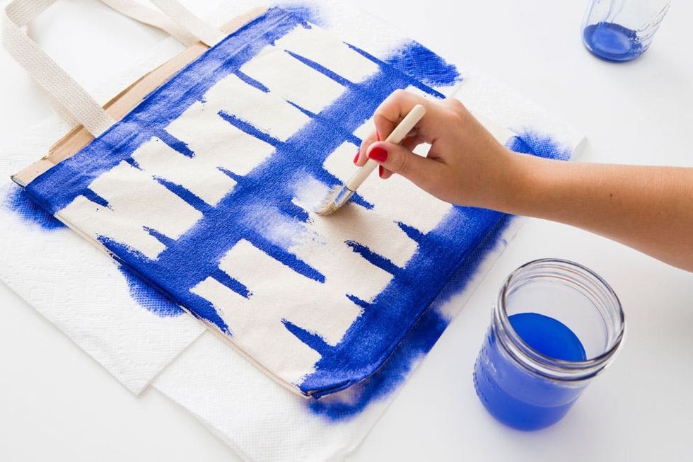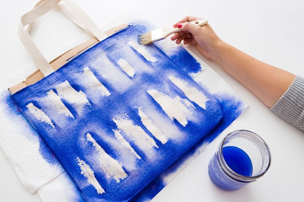 To ensure that the dye doesn’t bleed through to the other side, insert a piece of cardboard into your tote bag before painting.