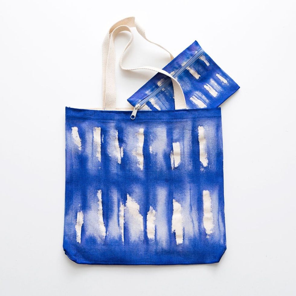 We’re loving the shibori trend popping up this season, and decided to put together this easy hand-painted spin on the Japanese tie dye technique! Skip the buckets and the mess and grab a DIY Shibori Tote and Pouch Kit ($24.95) from the Brit + Co HSN Shop in one of five colors!