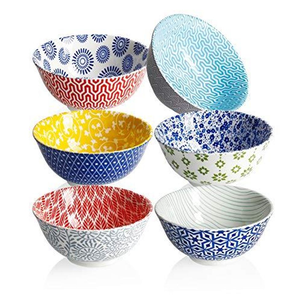I had to smile when I read in the Amazon description that Amazingware Porcelain Bowls "are sure to make you smile even on Monday morning." That is quite a statement! The bowls are bright and beautiful, and I love the color combinations. The set of 6 is made of lead-free ceramic porcelain.
