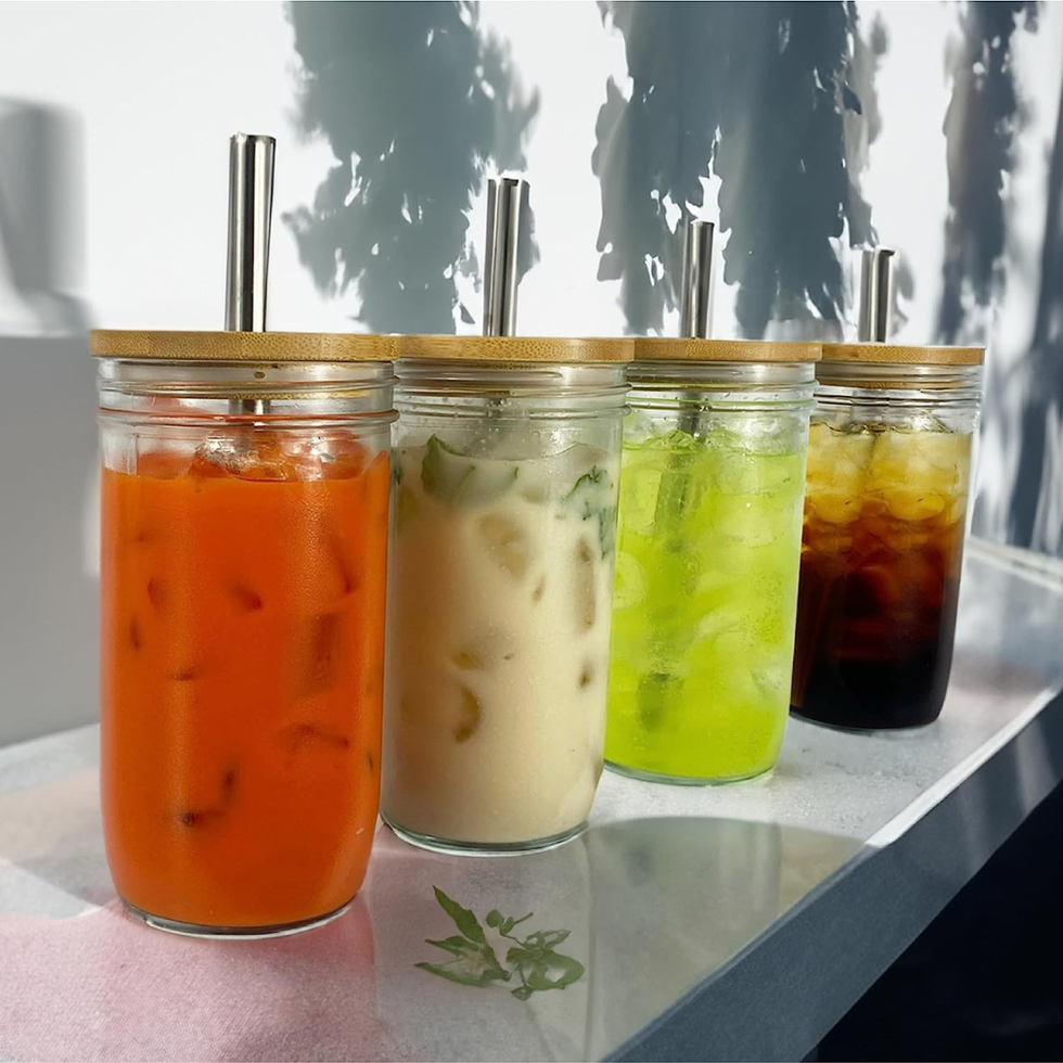 Nothing beats that first sip of iced coffee on a hot summer's day. And these glass cups will make that first sip so much more aesthetically pleasing. They come with a glass straw and bamboo lids for a more modern touch. And you'll even get coasters to ensure the cups don't leave any ring marks on your furniture.