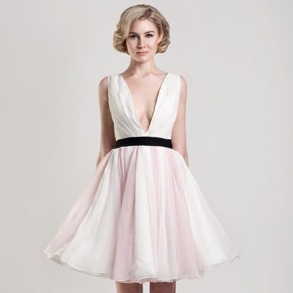 Summer weddings mean sunny and bright days… along with a lot of heat. While summer’s rays shouldn’t have the final say in your dream wedding dress, we know you want to look and feel as glam as possible. Short wedding dresses can be just as stylish as a traditional wedding gown, plus they let you feel the occasional breeze. Scroll on for 11 short wedding frocks that bring on the drama without the extra length.
