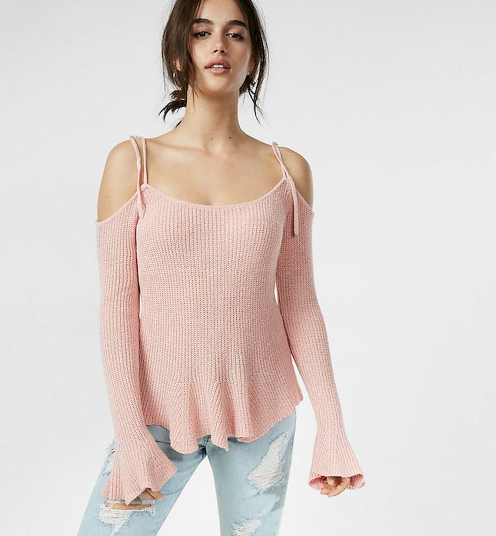 7. Express Tie Shoulder Sweater ($40): Channel your inner ballerina off-duty with a soft, ultra-girly bell-sleeve knit. Pointe shoes and wrap skirt not included.
