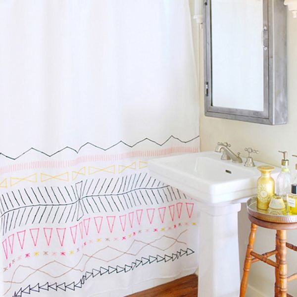 2. Embroidered Shower Curtain: One of our top picks from our modern embroidery round up, this stunningly simple shower curtain adds pops of color to an all white bathroom. (via designlovefest)