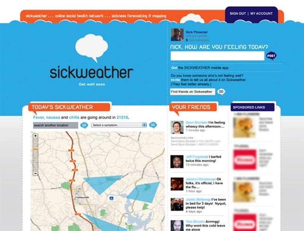Last winter, the coughing, sneezing, and sniffling tech world was all about Help, I Have the Flu, a Facebook app that attempted to help you find out who might have given you the flu, or who to watch out for based on status updates, friends’ updates, and the like. Well, this year it’s all about Sickweather, a website and mobile app that tracks sickness via GPS.