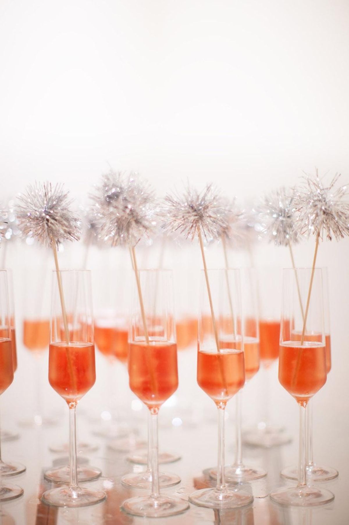 Give your drinks some flair by adding pom-pom topped stirrers to your glasses. Just think how cute all those sparkly raised glasses will look come toast time. (via Style Me Pretty)