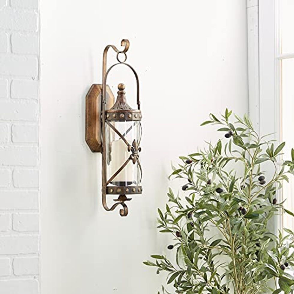 Calling Deco 79's Studded Wall Sconce a candle holder is an understatement. The Metal Wall Sconce "showcases a distressed bronze patina with a matte finish." The Sconce is highly rated, with 82% of reviewers giving 5 stars. There are several reviews where purchasers shared photos of the Sconce in their home, showing just how impressive the 20" high Sconce truly is.