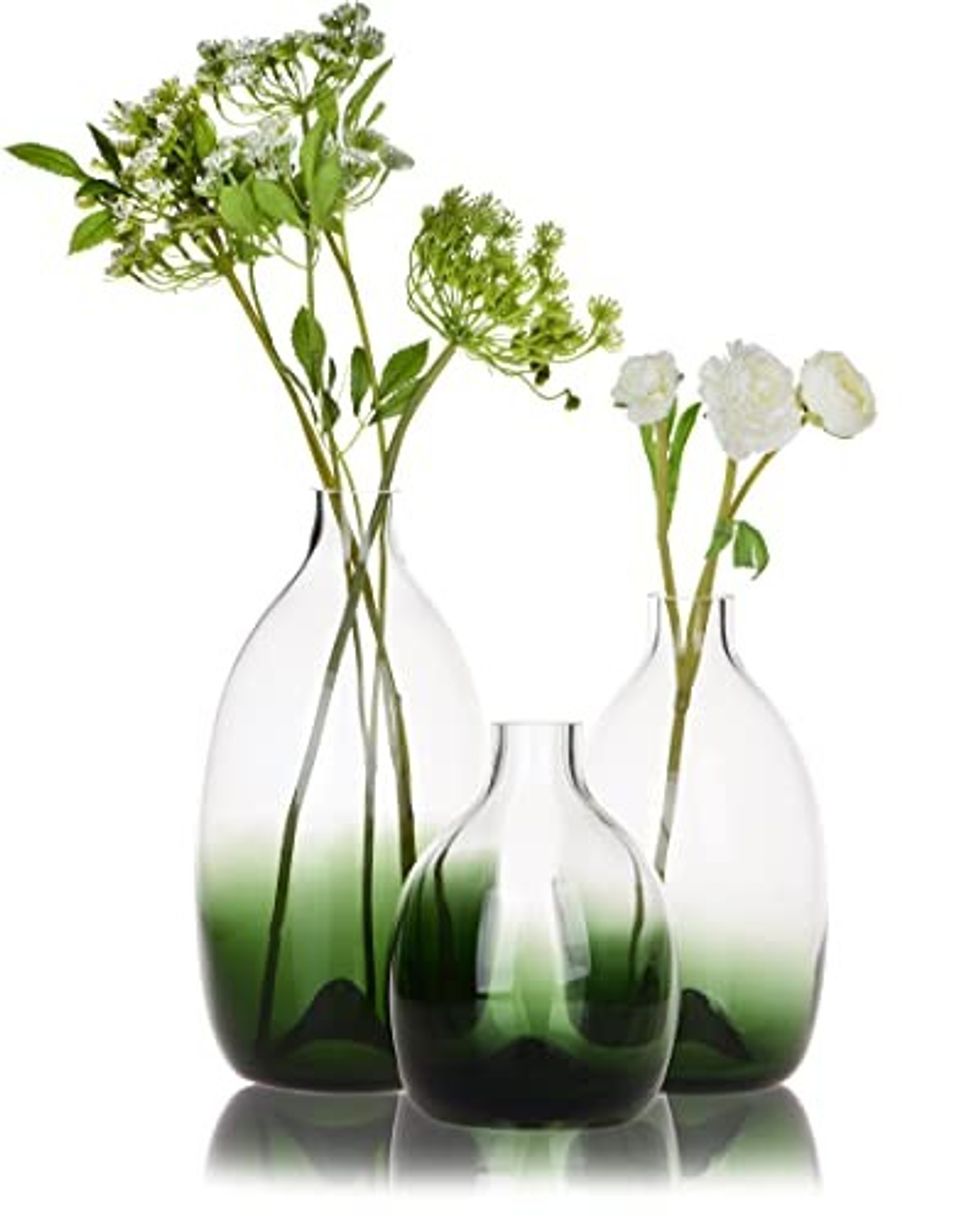 Conviva's Handblown Art Glass Vases have received a high percentage of 5-star reviews, 89% in fact. Verified Purchaser, Krissie, is one of those 5-star reviewers. She shared, "Stunning! Packaged very well, secure. No imperfections! The color is as pictured, so happy with the shade of green! Sizing is perfect. Really wonderful to look at, I'm extremely happy with this purchase! If you’re undecided, trust me, don’t be!!! You’ll be satisfied with this vase set, chef’s kiss!" The Vases are available individually or in sets of 3, in Green or Blue.
