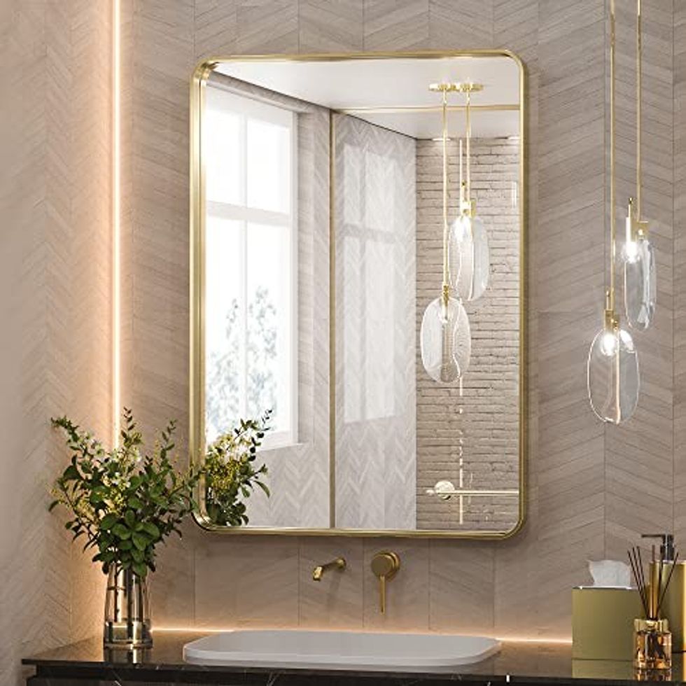 See it on AmazonThis Rounded Gold Mirror Will Increase The Light