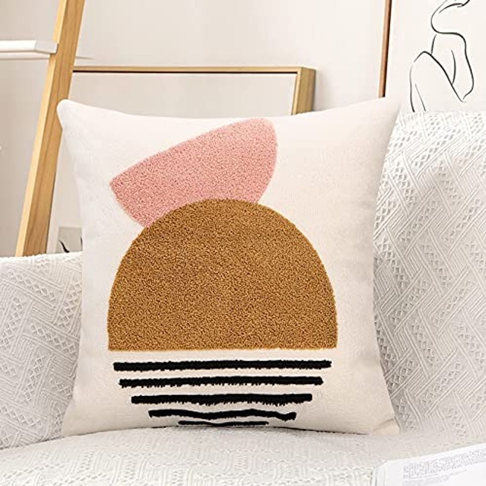 The bold and abstract design of this cushion is so vivid, and the color clash of the blush pink with the rich caramel brown is really eye-catching. Customers say the quality is great for the price, too.