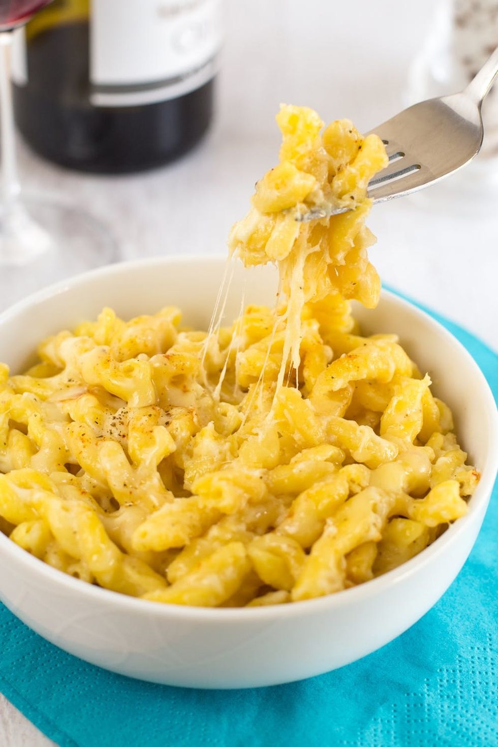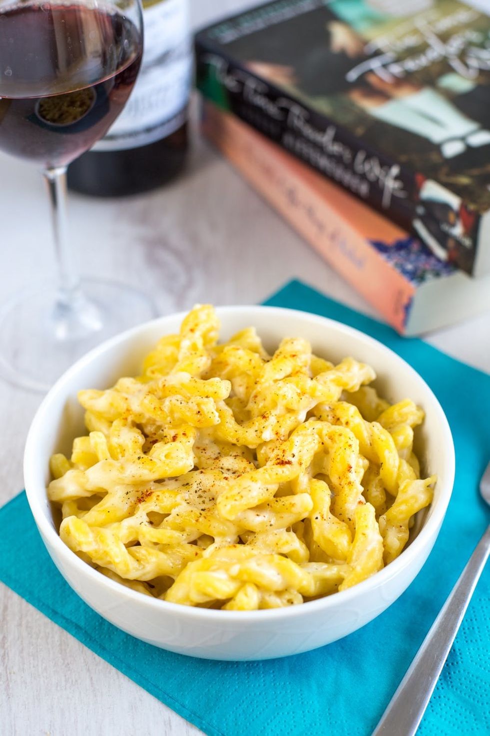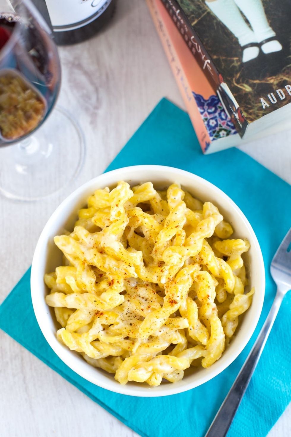 These days, it seems impossible to find the time to unwind; there’s always another email to send, another friend to reconnect with, or another new social network to catch up on (what do you mean I don’t need to be on every single one?!). So when I finally get to spend an evening home alone, I like to make the most of it. A glass of wine (or three…?), a long bath, and a good book — not forgetting a cosy meal for one! This single serving mac and cheese recipe is just the thing. With one pan and a few simple ingredients, you get a bowl of cheesy comfort food. It’s the perfect way to treat yourself.