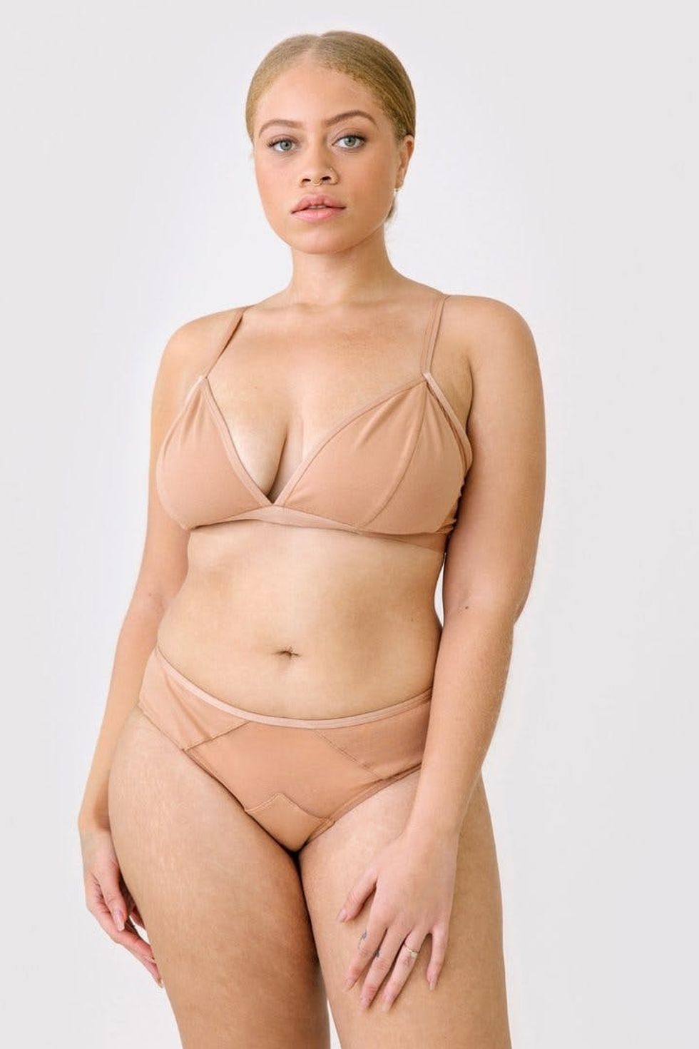 Liberté: Amber Tolliver founded Liberté after having trouble finding lingerie in her size. Although they only offer a handful of colors, this brand's attention to detail and fit, as seen in the Crosby Micro-Jersey Plunge Bra ($96) and matching Crosby Scalloped Cheeky ($48), more than compensate for it.