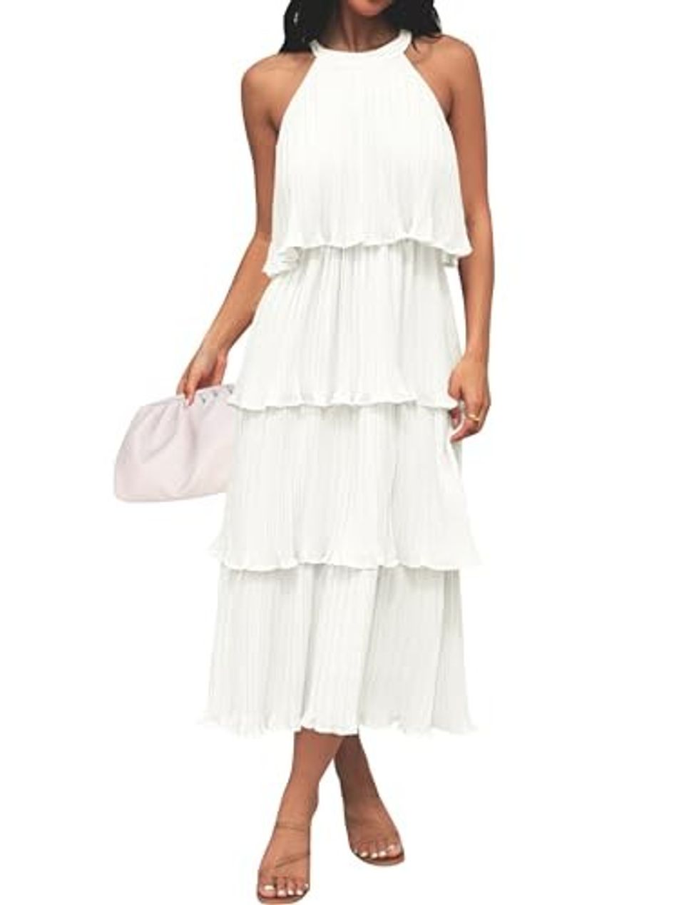 This layered chiffon dress is a customer favorite. With its flowing and comfortable design and pleated material, it gives off a sophisticated and fancy appearance. This dress is perfect if you're planning on dancing the night away comfortably. Pair it with a classic pair of low heels for a complete showstopping look.