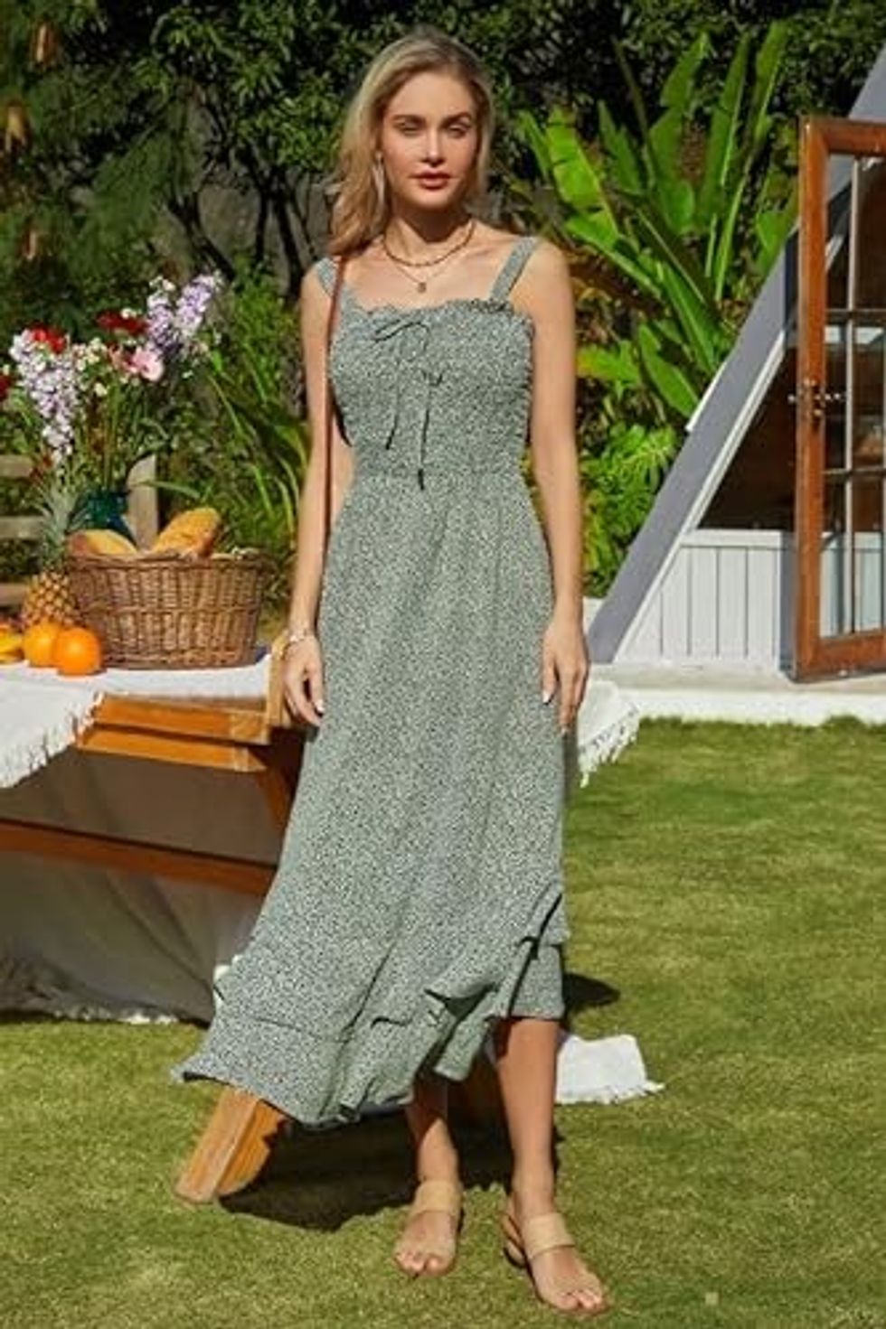 You can't go through summer without a floral dress, of course. This subtle printed maxi dress is made for walking around pretty gardens and enjoying summertime blooms. Pair with your favorite sandals and a chic bun for a classic and effortlessly gorgeous look.