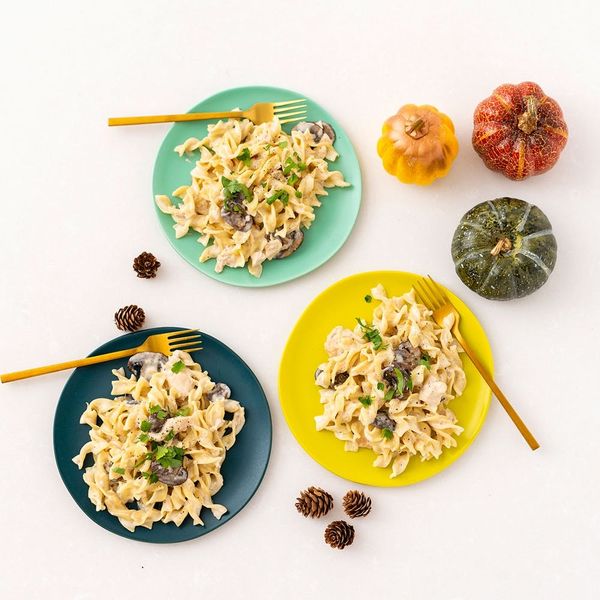 Stroganoff, the Russian pasta dish coated in a creamy mushroom sauce, has been a dinner staple among American homes for decades. It's flavorful and relies on a handful of shortcut ingredients like cream of mushroom soup, instant French onion soup (or dip), and cream cheese. Though you may think it's grown out of fashion, Pinterest has proven that comfort food still maintains viral status! We present to you the most pinned slow-cooker recipe: this chicken stroganoff, pictured left.