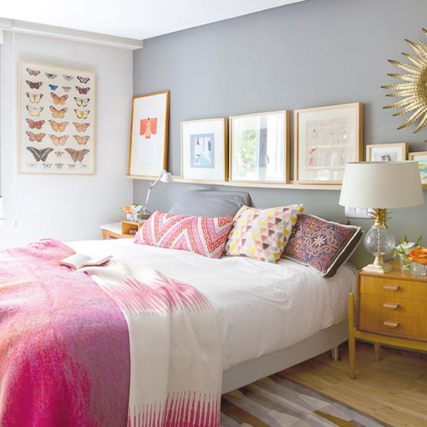 7. Install above-the-bed bookshelves. If your headboard isn’t ruling the space above your pillow, it’s a prime opportunity for shelving. Your bed will look a bit more majestic while giving those cute Etsy purchases a place to shine. (via micasa)