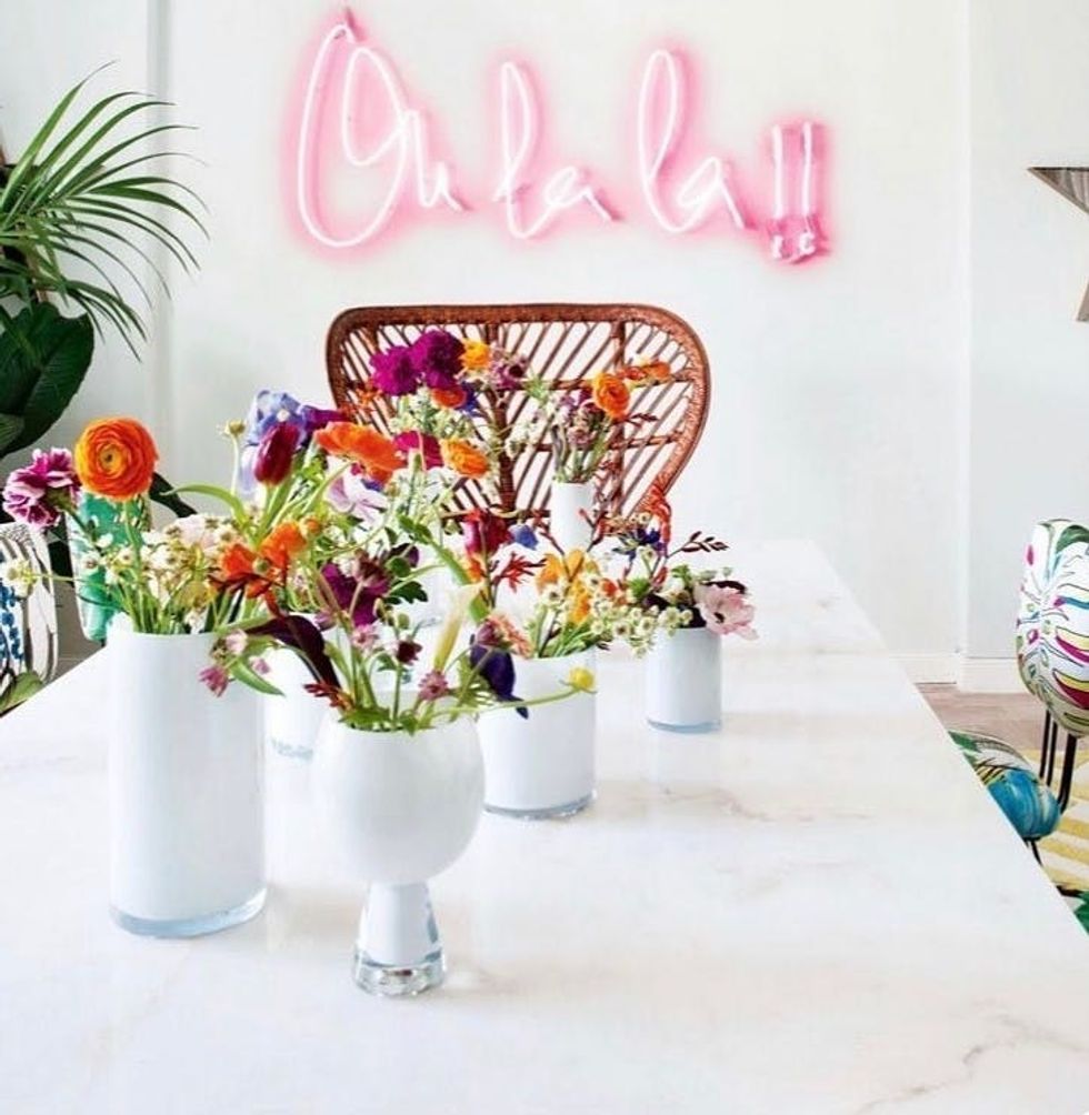 Neon, Neon: You've seen them at your favorite bar or salon, now it's time to take them home. A quippy graphic sign by your dining room table or built-in bar is a fab way to introduce extra fun into your living area. (photo via @decorist)