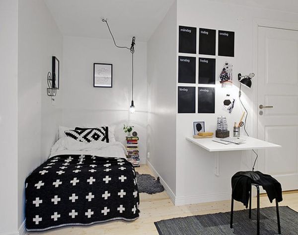 4. Keep Your Desk Space Clutter-Free: Clutter can pile up FAST in a small space, so always be on top of tidying areas that tend to get messy quickly—like your dresser, your coffee table, and especially your desk. Set yourself up right at the start: decorate minimally, make sure you have a designated space for everything you use daily, and create a plan for staying organized. (via 79 Ideas + Apartment Therapy)