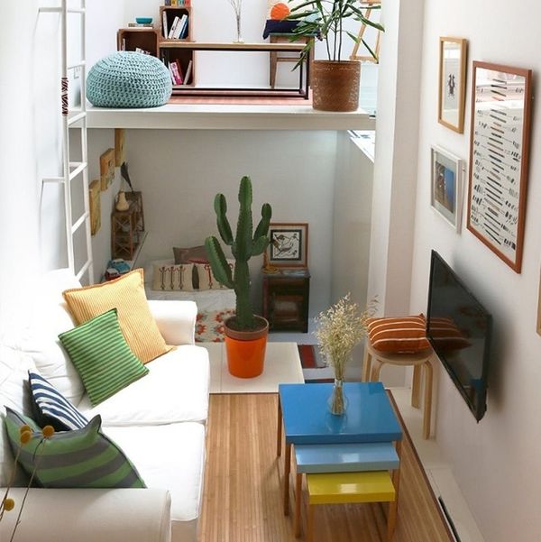 12. Pastel Platform: Most smaller apartments are studios and don’t come with a second floor. So an easy way to create a separate space is by building a wooden platform for your new bedroom. Raising it off the ground will give your bedroom a semblance of privacy, as well as storage underneath. (via Homedit)