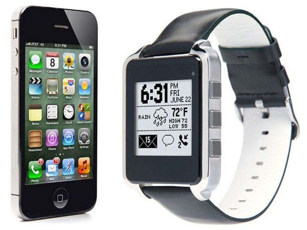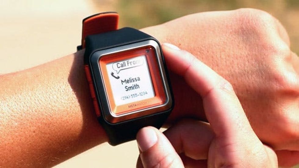2. MetaWatch ($179-$199): Out of the options, this one might be our favorite in terms of both fashion and functionality. Each of the styles works with Android and iPhone and features multiple watchface options, caller ID, SMS, email, calendar, and social media notifications. You can control music via Bluetooth and soon you can even monitor cycling and running!