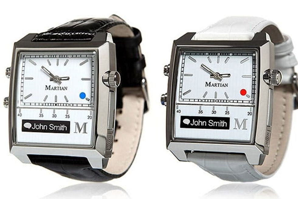 3. Martian Passport Watch ($300): Stainless steel, genuine leather, and sporty silicone? Is this a fashion accessory or a piece of technology? The Martian Passport is definitely the most stylish smartwatch we’ve come across. Don’t be fooled—despite its low-tech look, it’s not lacking in the “smart” department. With a noise-cancelling microphone and voice command, you can talk, listen, and receive notifications without ever taking your iPhone or Android phone out of your pocket. You can even take a photo remotely from your watch. What a timepiece!