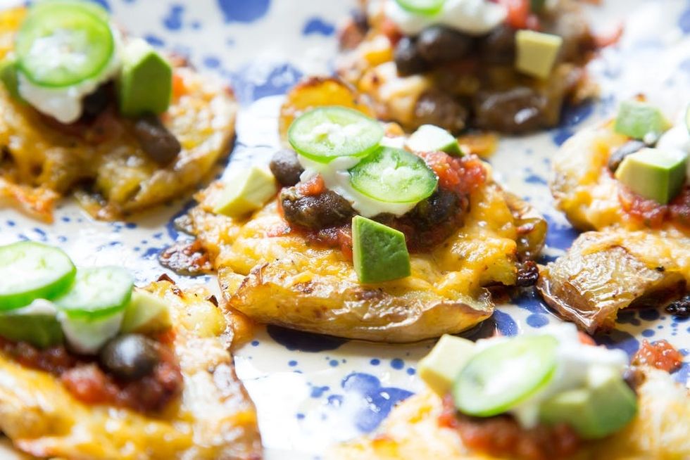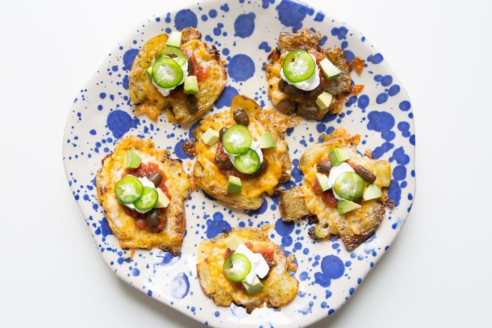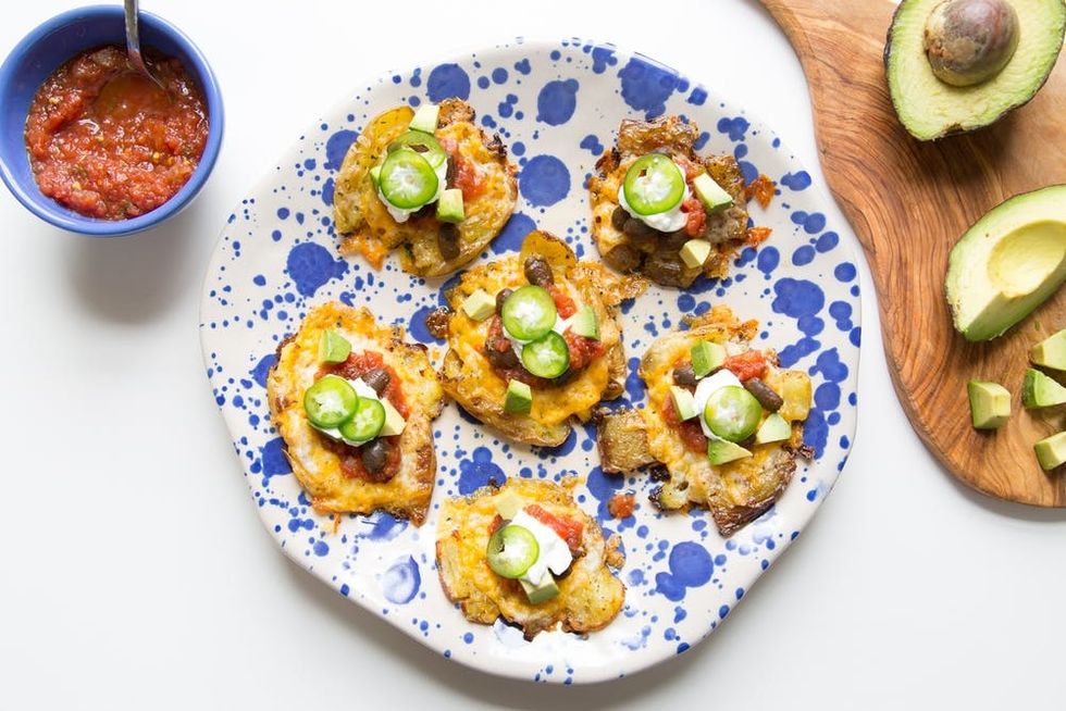 Who says you need tortilla chips to make a batch of delicious, ooey-gooey, cheesy nachos? For this crowd-pleasing recipe, we fused two of our favorite appetizers into one. Whip up a batch of crispy smashed potatoes and top with your favorite nacho fixings (beans, check! Salsa, check! Avocado, triple check!) for a marriage of yummy flavors.