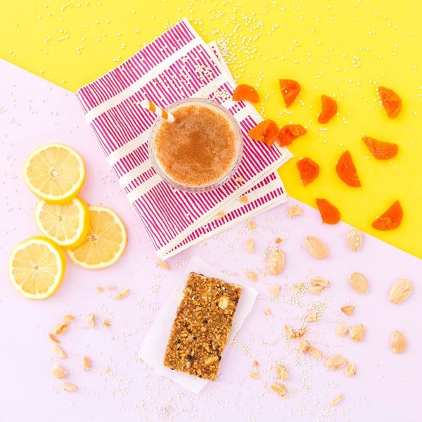 This is easily the most colorful drink and snack combo we’ve ever seen. The Sweet & Tart bar includes berries, almonds, chia seeds, quinoa and flax seeds, and it packs a serious punch.