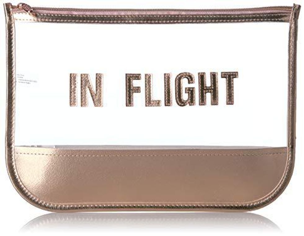 This in Flight Pouch travel pouch has a neat, chic design with lovely rose gold trim and “In Flight” lettering signaling to all it's your travel case. It’s the perfect size for carrying your bits and pieces to take on board, from headphones to hand sanitizer and a few beauty essentials.