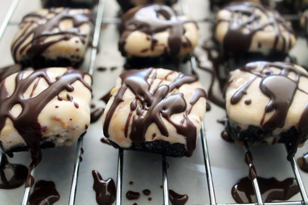 You know we love it when we can combine our favorite decadent sweets into one amazing treat. Our first foray into this category was our Oreo and Chocolate Chip Cookie Mash-Up. Now we’ve got another doozy for you, this time it’s our favorite ice cream bar (Snickers, of course) combined with our favorite baked treat, the brownie. We think these Snickers Ice Cream Brownie Bites would go well with all of our other Superbowl snacks.
