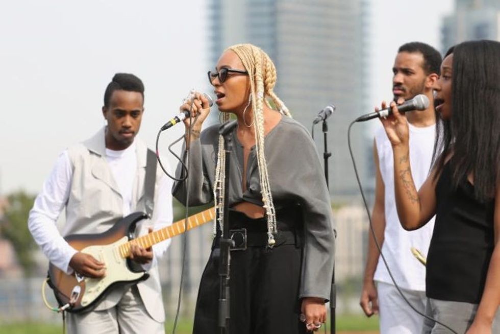 Solange has always been a style chameleon, but in recent years, she’s largely rocked her natural hair. But she just debuted beachy blonde braids at a New York Fashion Week performance. The “Rise” singer performed at the Maryam Nassir Zadeh fashion show yesterday, showing off a new platinum makeover, which she styled in super-long braids and twists, accented by beads. She let her new blonde hair steal the show, looking casual and cool in a long-sleeved gray crop top, wide-legged black pants, and beige heels.