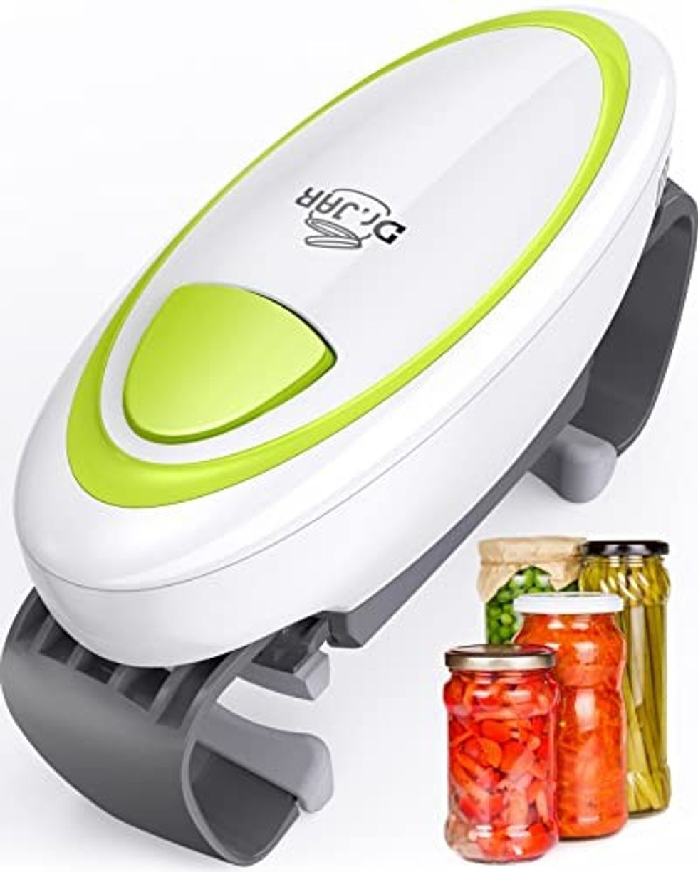 Say goodbye to struggling with stubborn jar lids with this electric jar opener. Its built-in magnet ensures that the lid stays put once it's opened, so you don't have to worry about twisting, pulling, or pain. It's perfect for those who struggle with manual jar openers, and makes opening even the toughest lids a breeze. Don't let stubborn lids stand in the way of your culinary creations - get this handy gadget today.