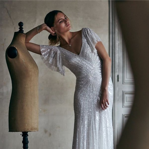 Besides being an unforgettable occasion where you and your S.O. officially seal the deal (and throw the most epic partay ever), your wedding is the ultimate occasion to show off that impeccable sense of style. In other words, it’s your time to shine. You might be a bona fide lazy girl the other 364 days out of the year, but girl, this is the one day you might as well go all out — shimmery headpieces, glitter-flecked heels and a show-stopping gown with glamorous beadwork and crystal embellishments. Because why not? Whether you’ve been dreaming of a classic ball gown or a totally non-traditional wedding dress, we’ve curated a list of glitzy white dresses that will have you swooning hard.