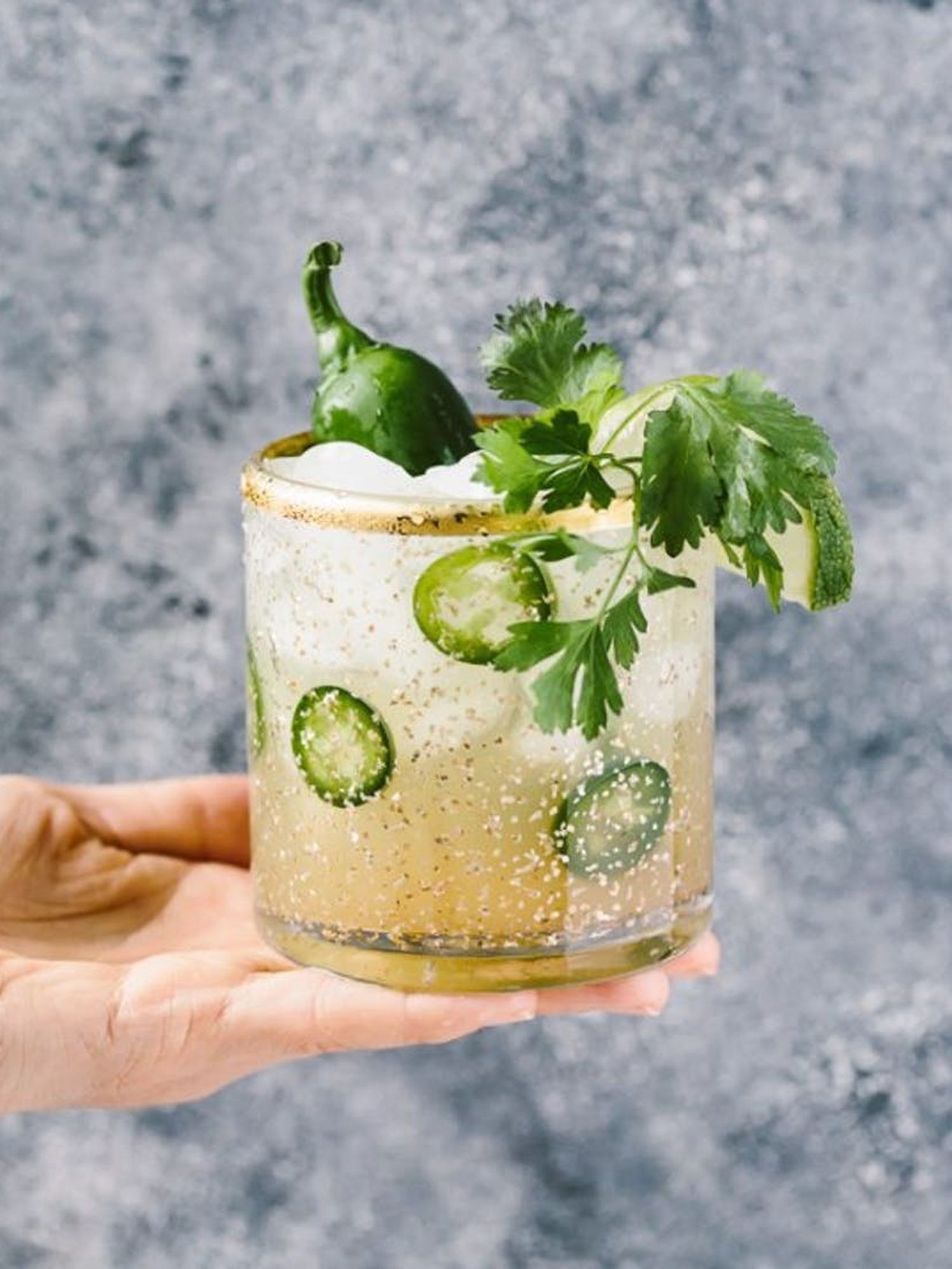 These spicy cocktails are like a hybrid between your favorite green juice and a classic marg. Packed with kale, ginger, and orange juice, they're an equally healthy and boozy sip! (via Gastroplant)