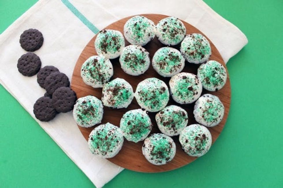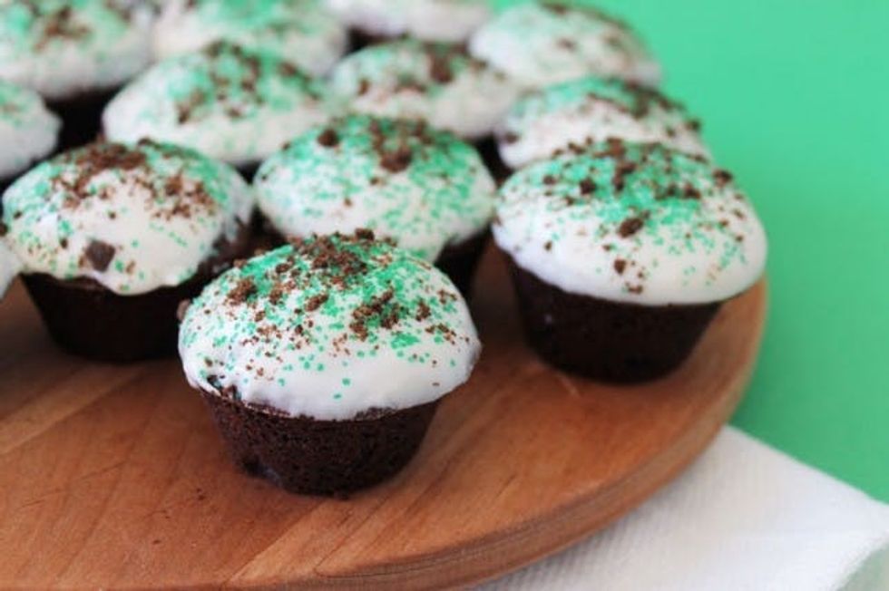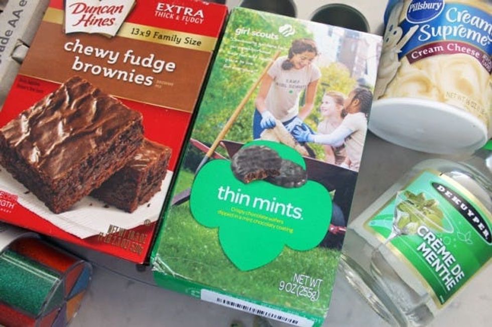 Never thought you’d see Thin Mints, creme de menthe, and cream cheese frosting in one recipe? It’s time to get cooking! Preheat your oven to 350 degrees F.