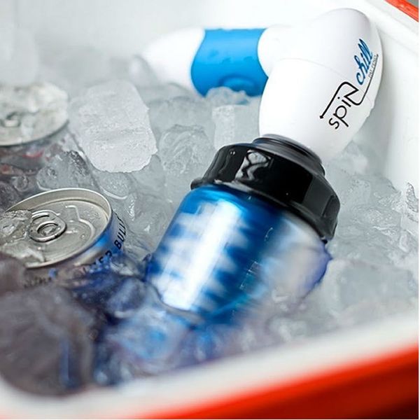 Picture a perfect summer day of chillin’ poolside with your BFFs. The sun is shining, the grill is sizzlin’ and your beer is… lukewarm. You could throw it into an ice cooler and wait until autumn for it to chill, or you could accelerate the process with the SpinChill, a patent-pending, hands-free beverage chiller that uses a scientifically-proven spinning action to cool your warm bevs and get the party started again.