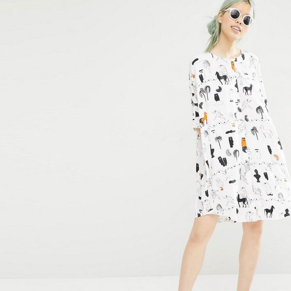 12. Monki Printed Oversized Shirt Dress ($49): Who knew a shirt dress could demand this much attention? The eclectic, illustrated print is a far cry from your average LWD and is guaranteed to get you noticed no matter what’s on the agenda. Wear it with knee-high gladiators and colorful shades, then watch as the compliments come rolling in.