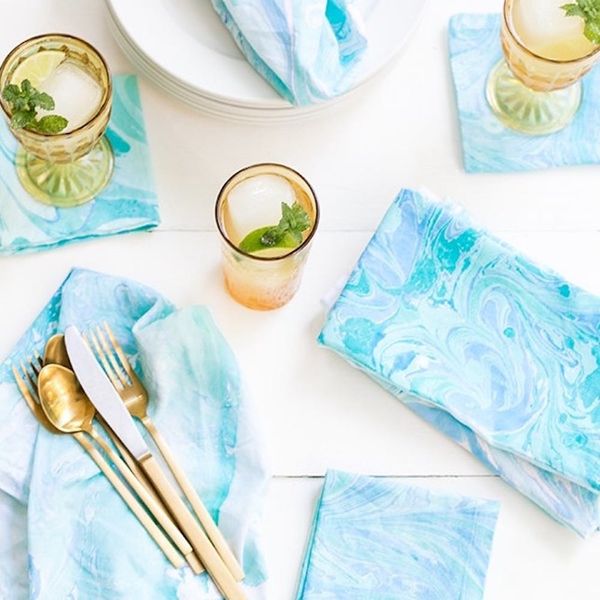 Once the warm weather rolls in, outdoor entertaining is a total must. If you love the look of Anthro’s Marbled Napkin ($18), hack the same swirly design for your patio parties. (via Sugar & Charm)