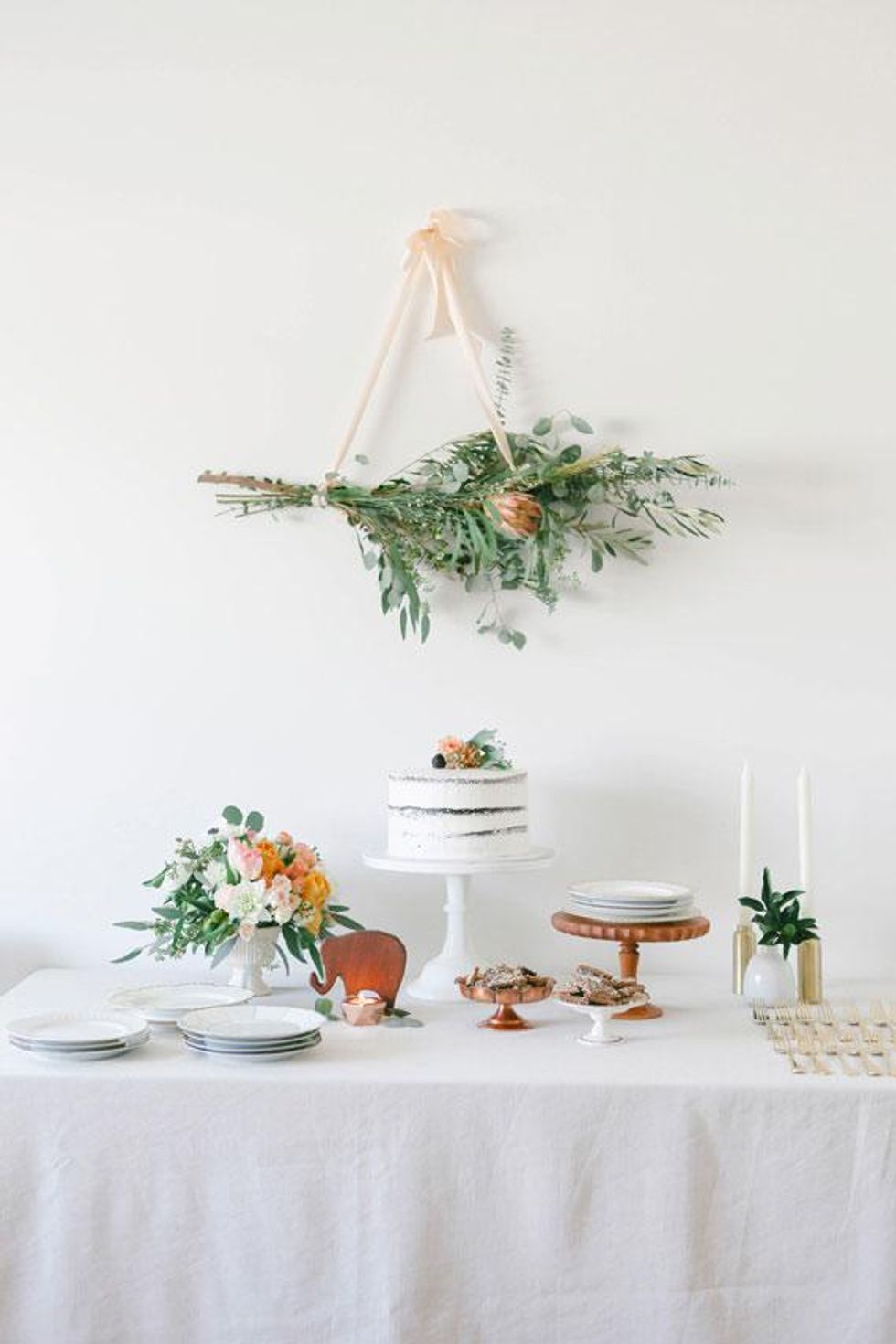 If cravings of chips and guac, tacos and all things Tex-Mex are all the baby mama can think about, then a Mexican soiree *has* to be in store. Use printer paper and scissors to DIY this banner, and head to your local farmers market to liven up the tablescape with bright flowers, cacti and gold accents. Your guests will be so blown away they might forget about the food… for a minute. (via Style Me Pretty)