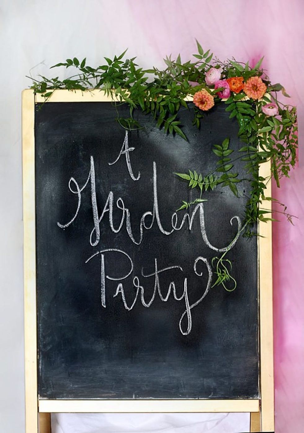 1. Garden Party Chalkboard Sign: Welcome your best girls with a chalkboard that sets the tone for the day. You can also use the space to share the signature drink, menu, and party activities. (via The Celebration Society)