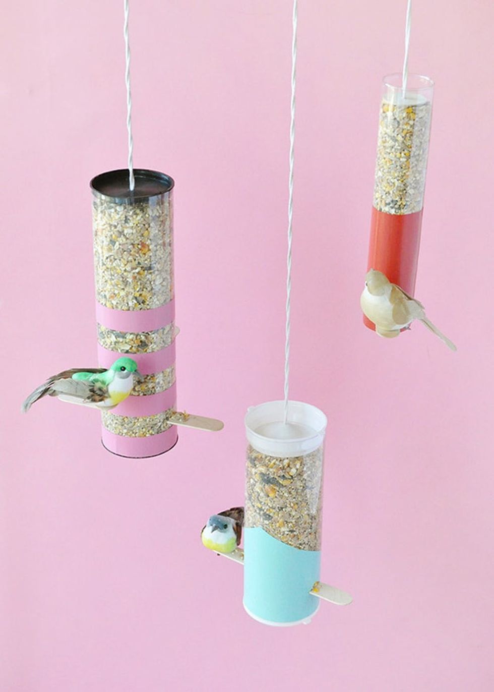 16. DIY Color Block Feeders: You can’t have a garden party without the birds! Jazz up some plain feeders in time for bird-watching season, and you’ll have your neighbors thinking you’re Snow White. (via Handmade Charlotte)