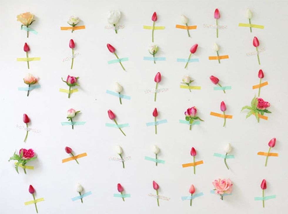 23. DIY Flower Wall: With a few bouquets on clearance, and some funky washi tape, you can put together a one-of-a-kind statement wall. (This stunner is also great for a bridal shower, a baby shower, or any other festive occasion.) (via Inspired By This)