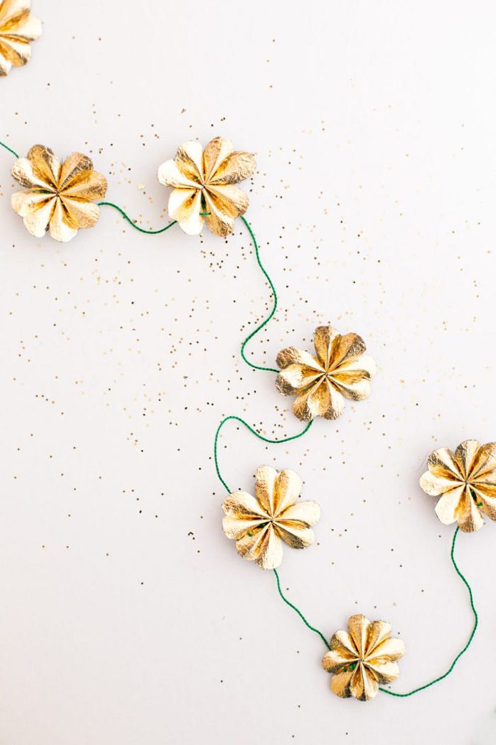 15. DIY Gold Leather Clover Garland: St.Patrick’s Day is coming up, so you can include festive creations in your decor. Gold leather? Heck yeah. (via Flax & Twine)