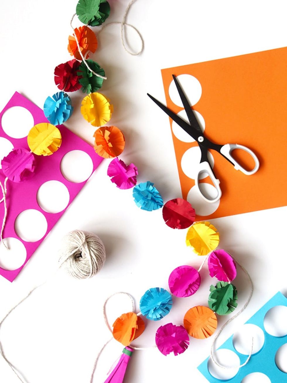 26. DIY Paper Pom-Pom Garland: Whether they’re wool, synthetic, or paper, pom-poms make everything better, and you can make them any size you want once you master the paper technique. (via Paper & Pin)