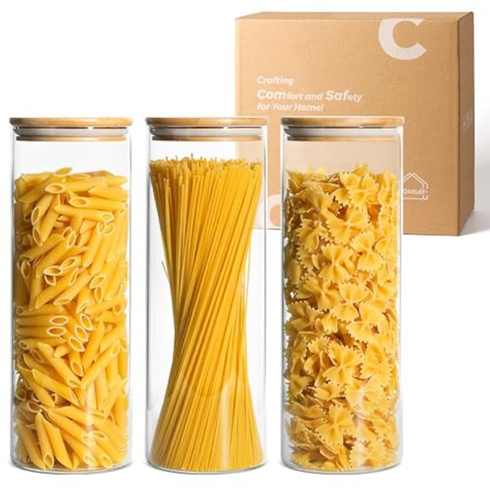 Instead of filling your space with boxes that are bulky, put your dry food items in the glass containers to help them stay fresh and keep things looking tidy. The display itself is beautiful so why not make your kitchen look like a professional one!?