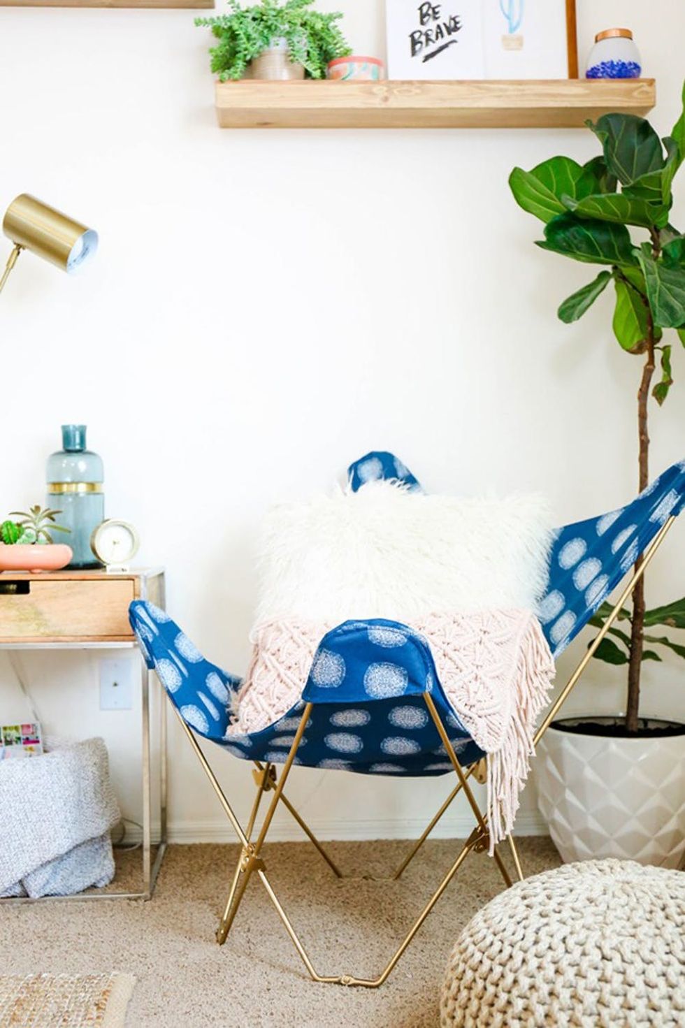 1. DIY Butterfly Chair Makeover: The cheap-ish folding chairs you find at garage sales can take on a whole new look with a fresh cover and some spray paint. (via Proper)