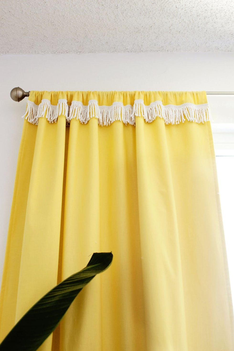 2. DIY Fringed Black-Out Curtains: Not a fan of all that seasonal sunlight streaming through your windows every morning? With a cute tassel trim, these yellow black-out curtains are what you need to keep it cute while you keep out the sun. (via Melodrama)